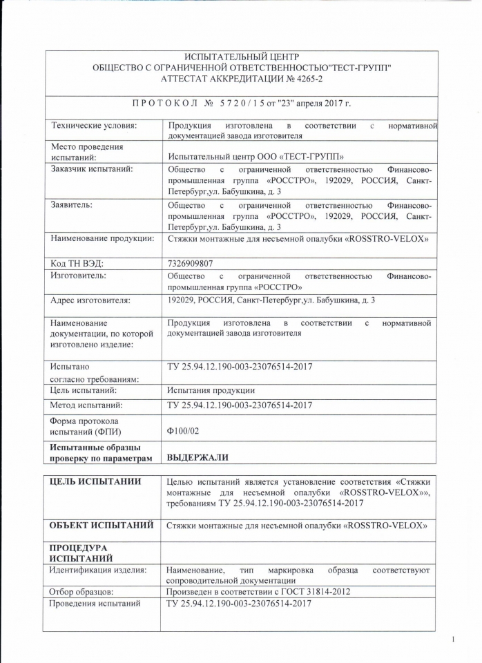 Протокол испытаний на стяжки лист 1