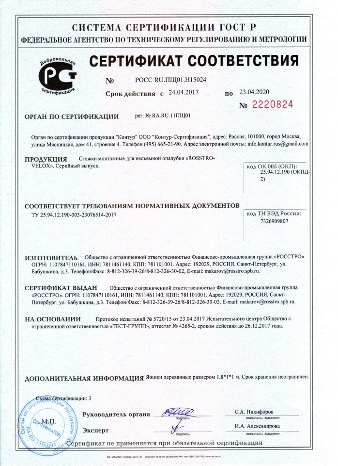 Сертификаты на стяжки