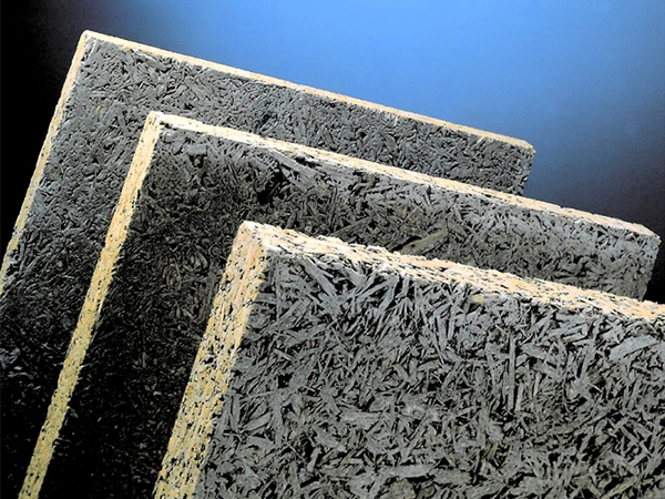Однослойная плита для опалубки наружных и внутренних стен. Составляющими компонентами при ее изготовлении являются: древесная щепа хвойных пород (около 90 % объема плиты), цемент, силикат натрия, сульфат алюминия, вода.